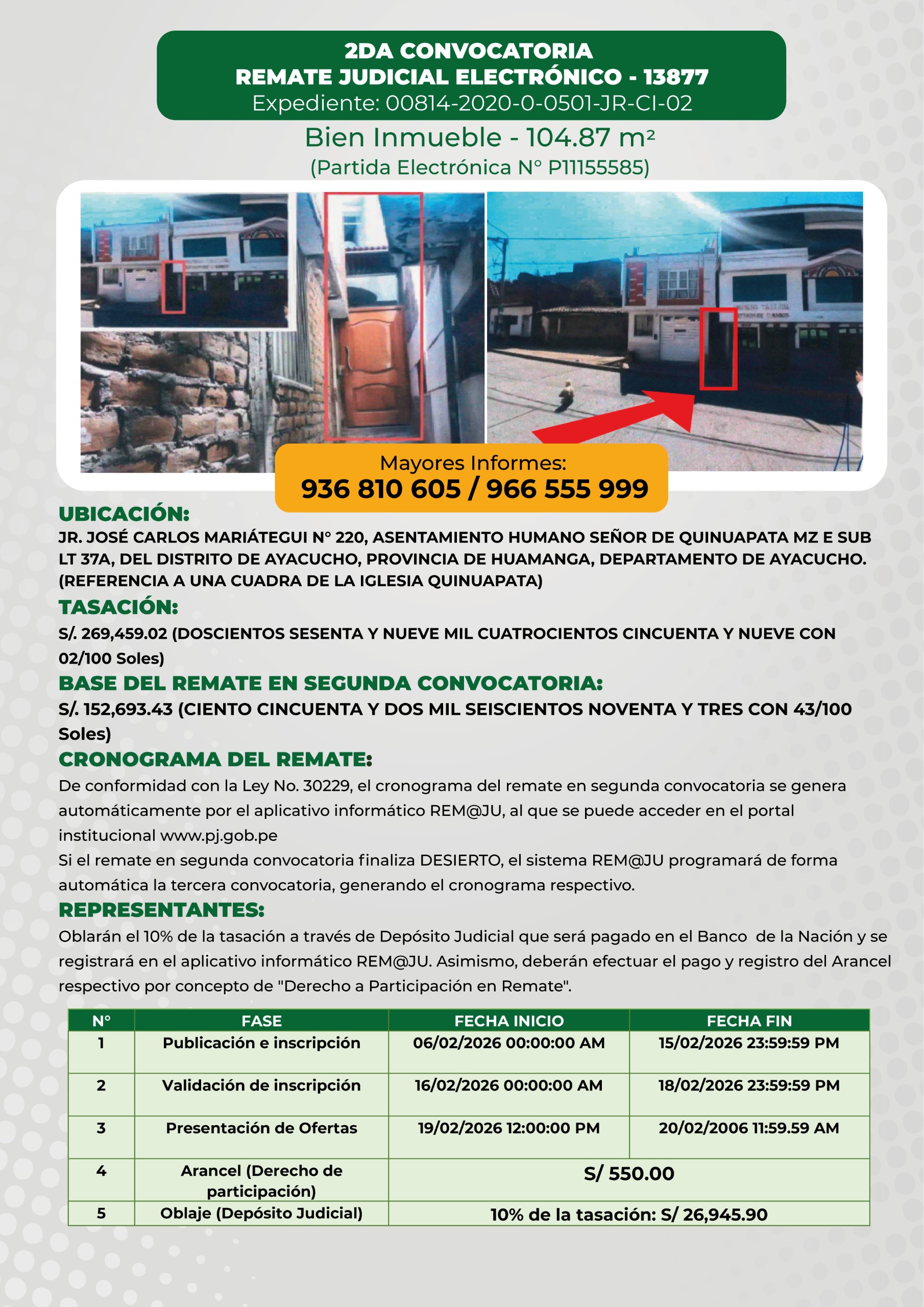 Inicio Publicaciones REMATE JUDICIAL ELECTRÓNICO 13877 - 2DA CONVOCATORIA